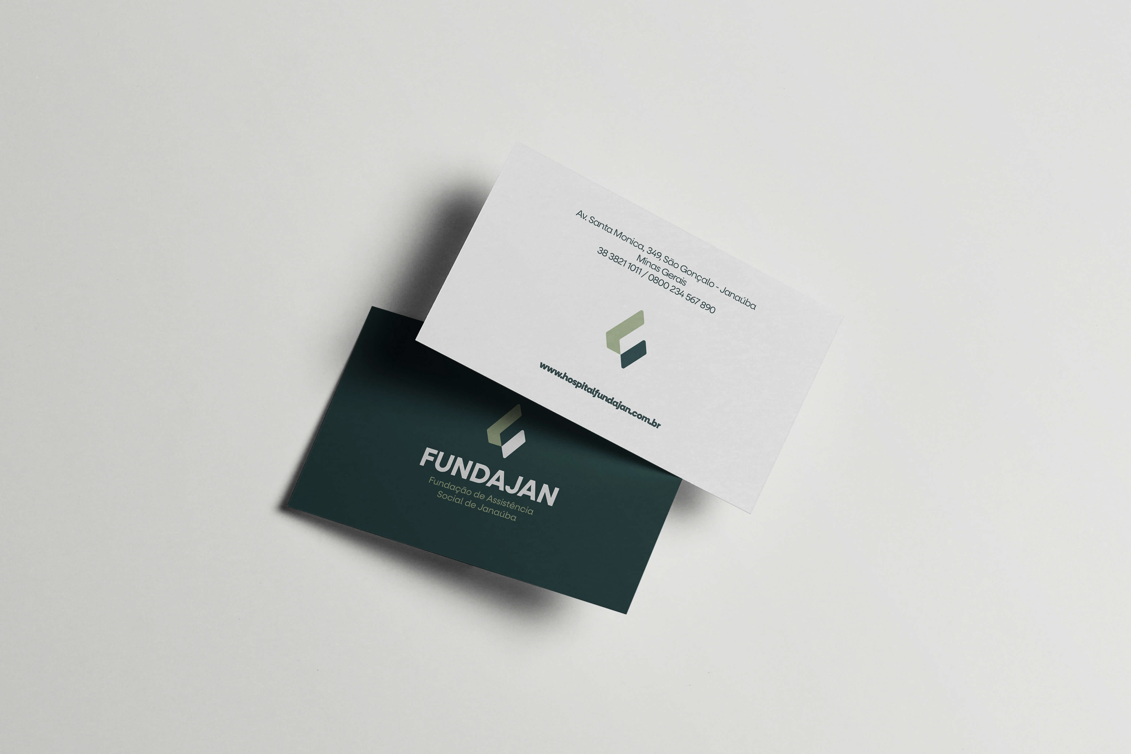 A estética escolhida abandona lugares-comuns, como o uso da cruz ou da cor vermelha, para adotar uma linguagem visual moderna e tecnológica. Através de linhas limpas e diretas, o logotipo comunica agilidade e segurança, reforçando a mensagem de que a FUNDAJAN é um lugar onde os desafios de saúde encontram soluções definitivas. A paleta em tons de verde escuro foi estrategicamente selecionada para evocar tranquilidade, cura e esperança, mantendo a essência humanizada que é o pilar da fundação, enquanto a tipografia robusta garante a imagem de profissionalismo e confiança necessária para uma gestão hospitalar de excelência. Assim, a nova marca apresenta ao público uma instituição que honra seu passado de acolhimento em Janaúba, mas que se posiciona firmemente como uma referência de vanguarda na medicina atual.