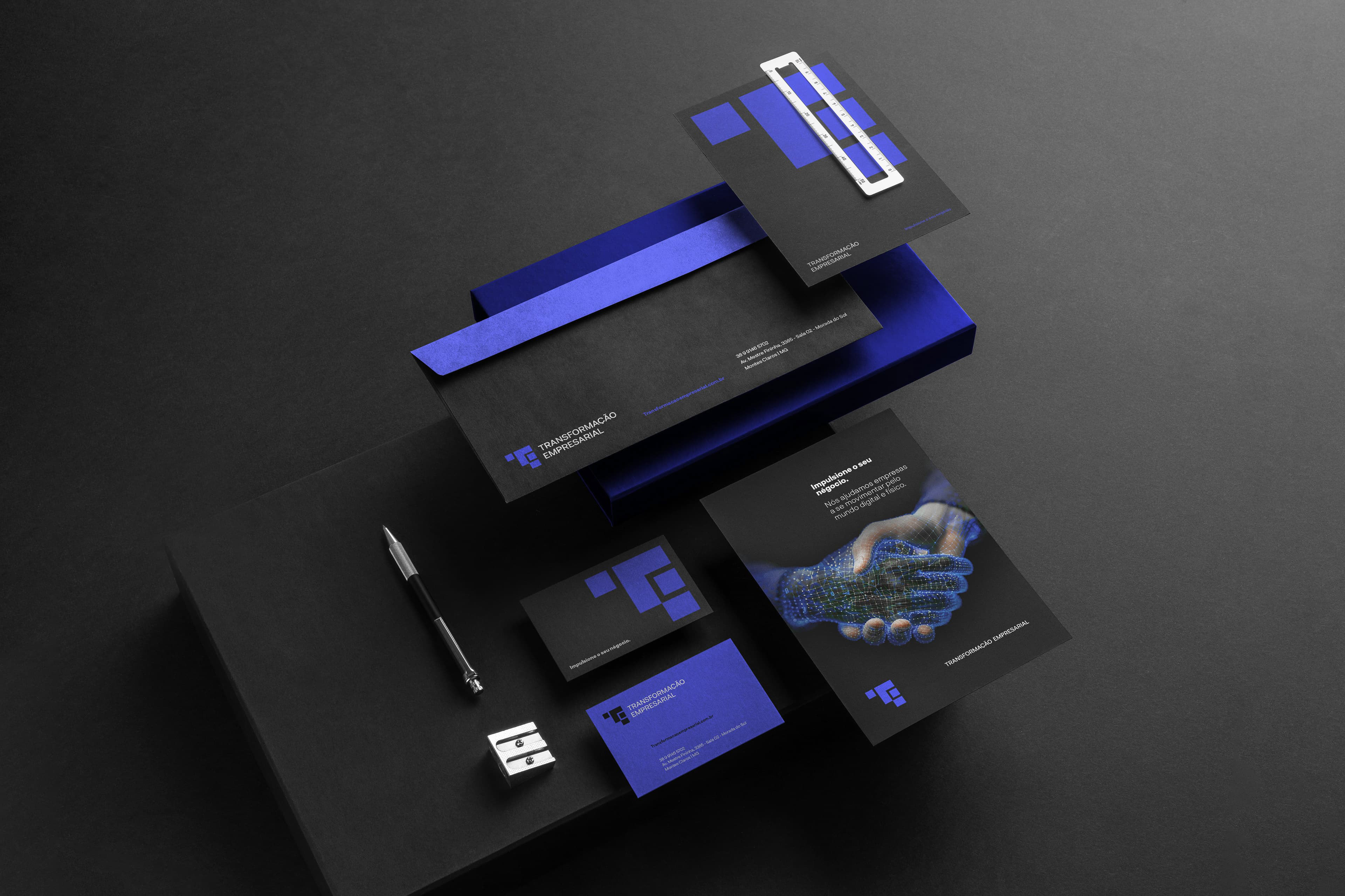 Assim, a marca Transformação Empresarial traduz em sua identidade visual a essência do que entrega: confiança, método e modernidade, aliados a um olhar estratégico para resultados reais em marketing e vendas.